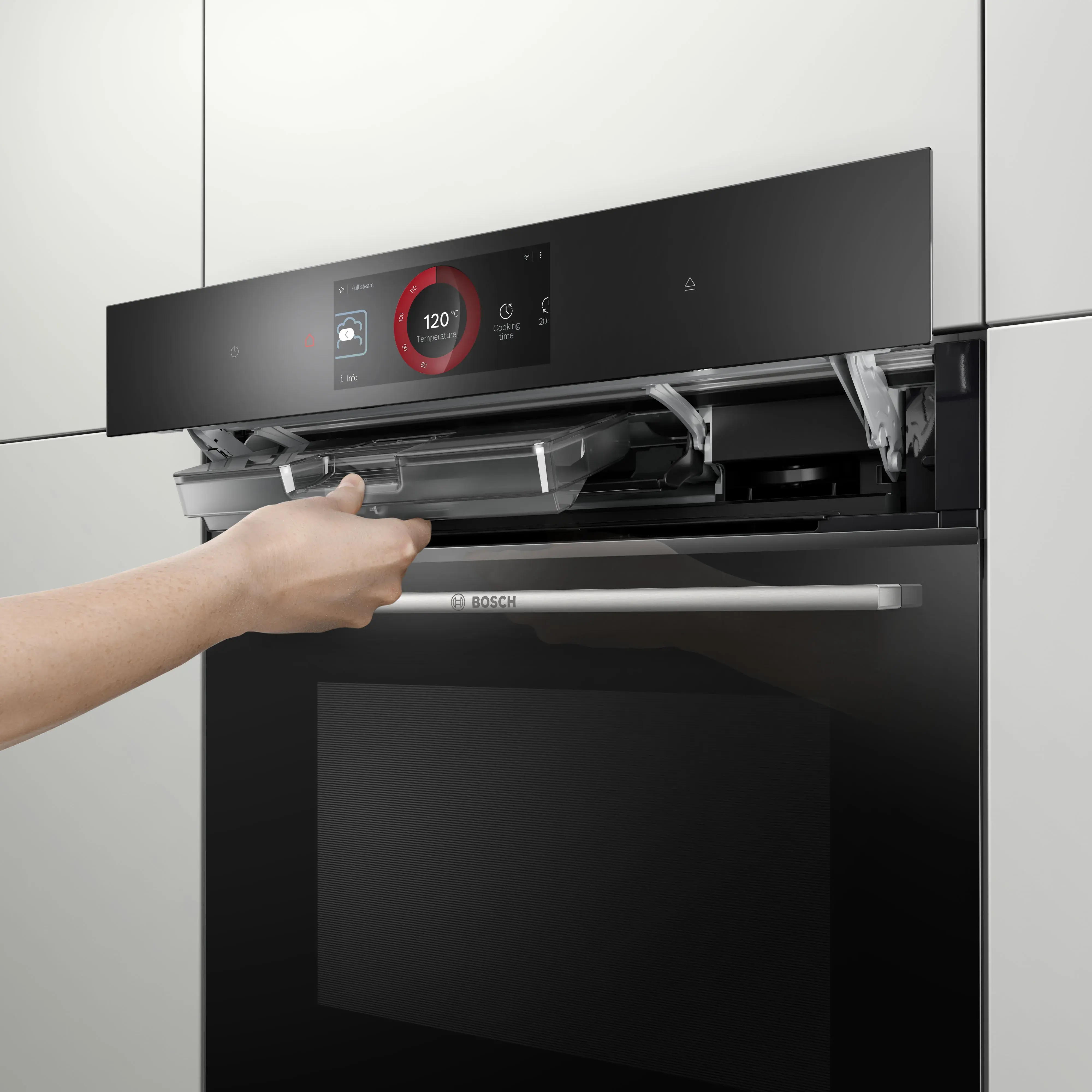 Eine Besonderheit ist der digitale Bedienring, über den Sie das Display des Backofens einfach und intuitiv steuern – ohne herkömmliche Drehknöpfe. Wählen Sie einfach die gewünschte Funktion aus und bestätigen diese durch sanftes Antippen.